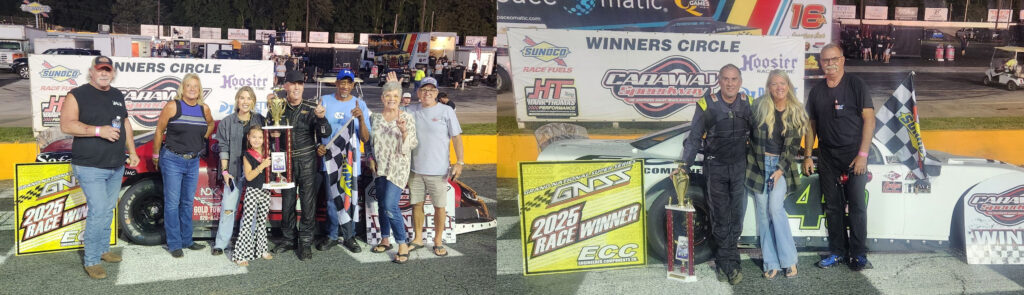 With redemption on his mind, Burns headed the pack for race two. As has been the case all of 2025 however, the car wouldn’t cooperate, unfortunately relegating him to drop multiple positions and eventually head to pit road under the competition caution for adjustments. Picking up the bones was none other than Mayfield and Henriksen once again, with Mosley and Bob Schacht in tow. A furious battle between Mosley and Schacht for a spot on the podium would eventually result in both drivers going for a loop in turn four. Despite this, both were able to pick up where they left off, with Schacht finally gaining the advantage in third. All eyes however were glued to Mayfield and Henriksen, both locked in a dead heat for the top position. Mayfield up high, Henriksen down low, it was truly anybody’s game. The crowd then rose to their feet with five to go as tensions started to spike. Both traded the occasional contact, still side by side coming to the white. Once the checkered fell, it was Henriksen who gets the drive on the inside and prevails against Mayfield in one of the best finishes in GNSS history. Coming home third is Bob Schacht with a much needed good run after what has so far been a year to forget. To the victor go the spoils as AJ Henriksen not only leaves with the second twin 50 trophy but also with the second Howe Racing Enterprises Hard Charger Award.
